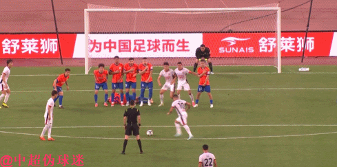 看直播的时候,看到这个进球过程时就有一个念头闪过,成都蓉城拆人墙的球员似乎离泰山队球员太近了,不太符合现行的人墙规则。只是主裁判麦麦提江站在那里看得一清二楚,却第一时间判定进球有效。